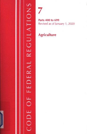 书名:Code of federal regulations. Title 07, Agriculture, Parts 400 to 699, revised as of January 1, 2020